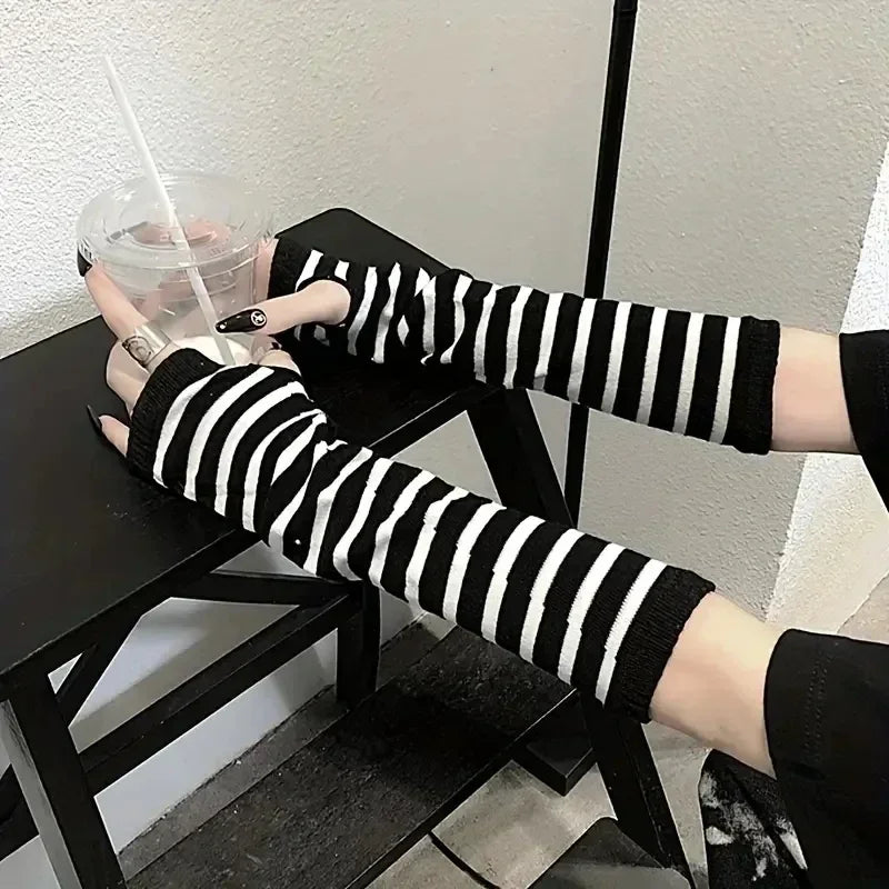 Le motif rayé noir et gris et la longueur jusqu’au coude confèrent à ces gants un look punk et gothique distinctif. Inspirés par la mode Y2K et les styles Lolita japonais, ils ajoutent une touche d’audace et de sophistication à toute tenue. Les gants sont un accessoire de mode qui attire l’attention, permettant de créer des looks uniques et personnalisés, adaptés à des événements alternatifs, des concerts, des festivals ou des sorties décontractées. La palette de couleurs neutres — noir, gris et combinaisons rayées — permet de les assortir facilement avec une variété de vêtements et de styles.